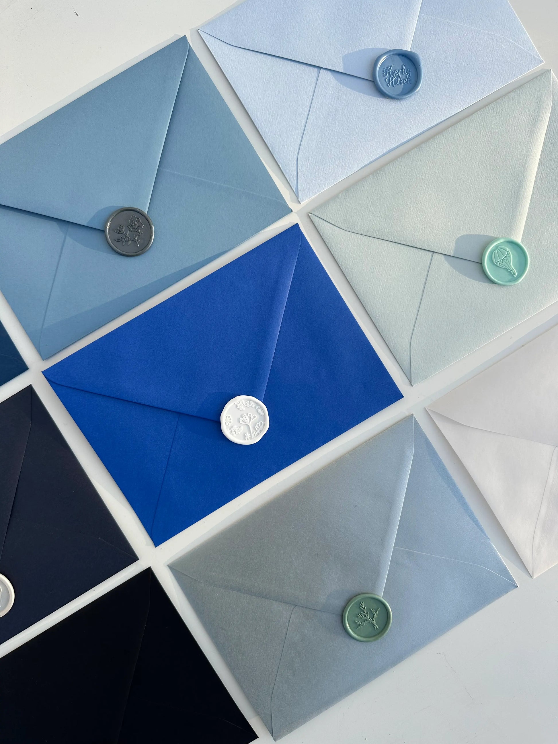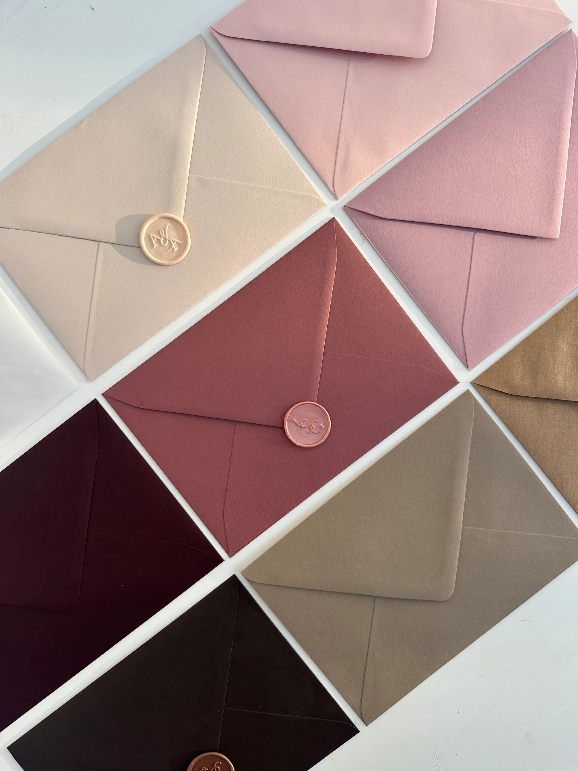 Vælg blandt 26 forskellige kuverter og fuldend din invitation med en farve, der matcher dit design. Vores kuverter kan tilkøbes og skaber en elegant og gennemført sammenhæng mellem invitation og kuvert. En smuk detalje, der løfter helhedsindtrykket og gør din invitation endnu mere eksklusiv.