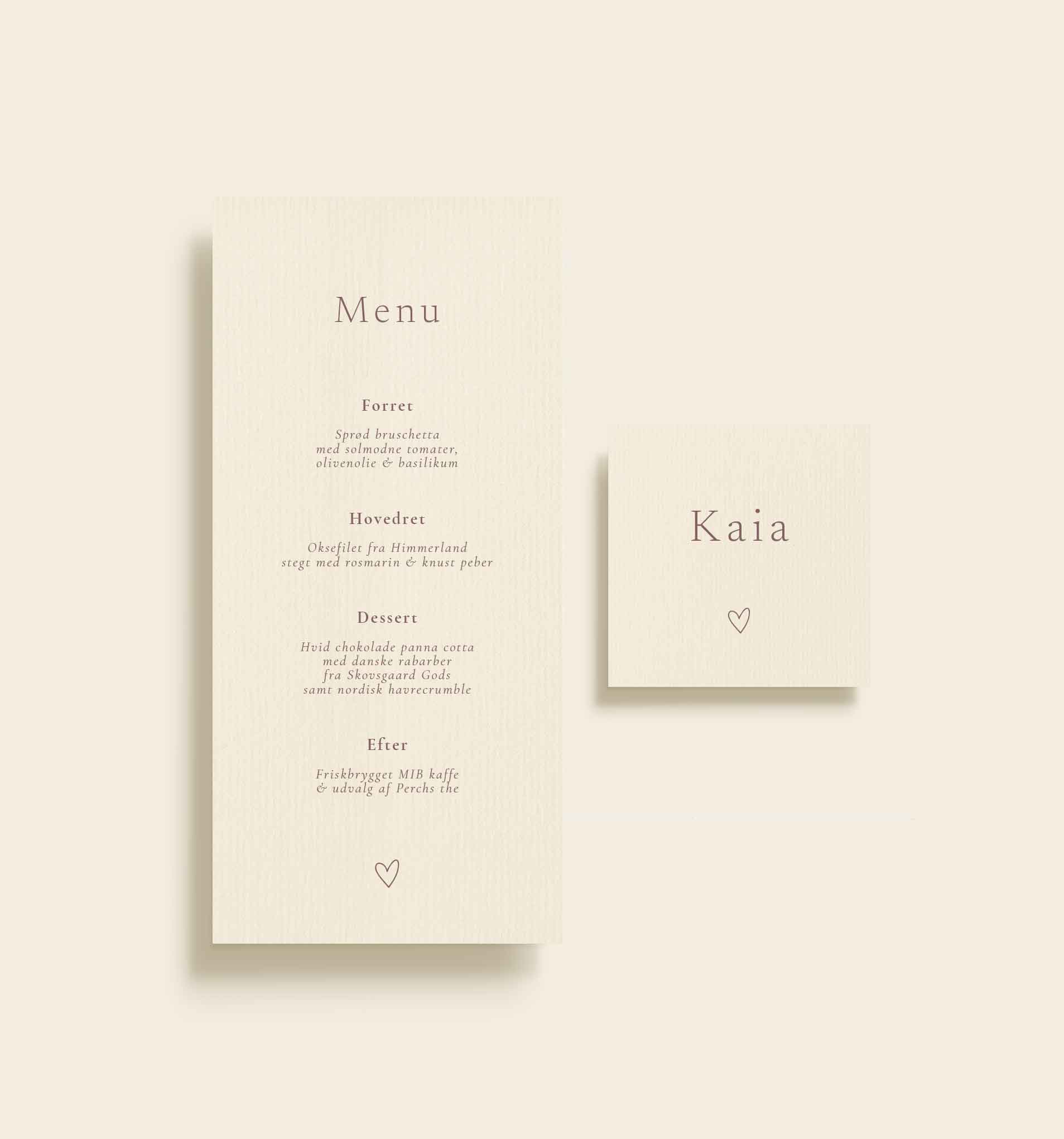 Ja. I kan tilkøbe menukort, bordkort, velkomstskilte, takkekort, bordplan m.m. - alt i samme serie, så I får en smuk, rød tråd på dagen.