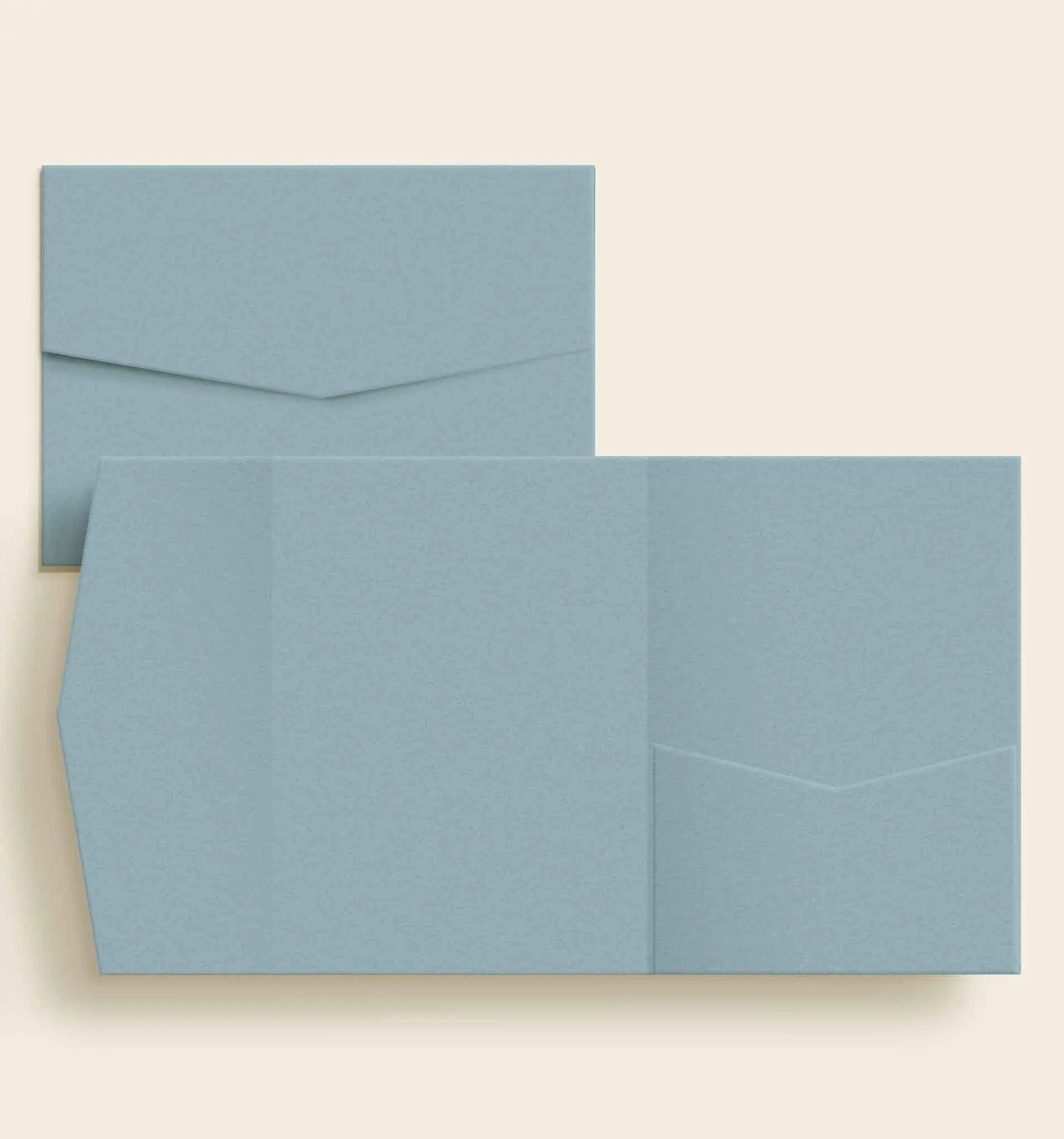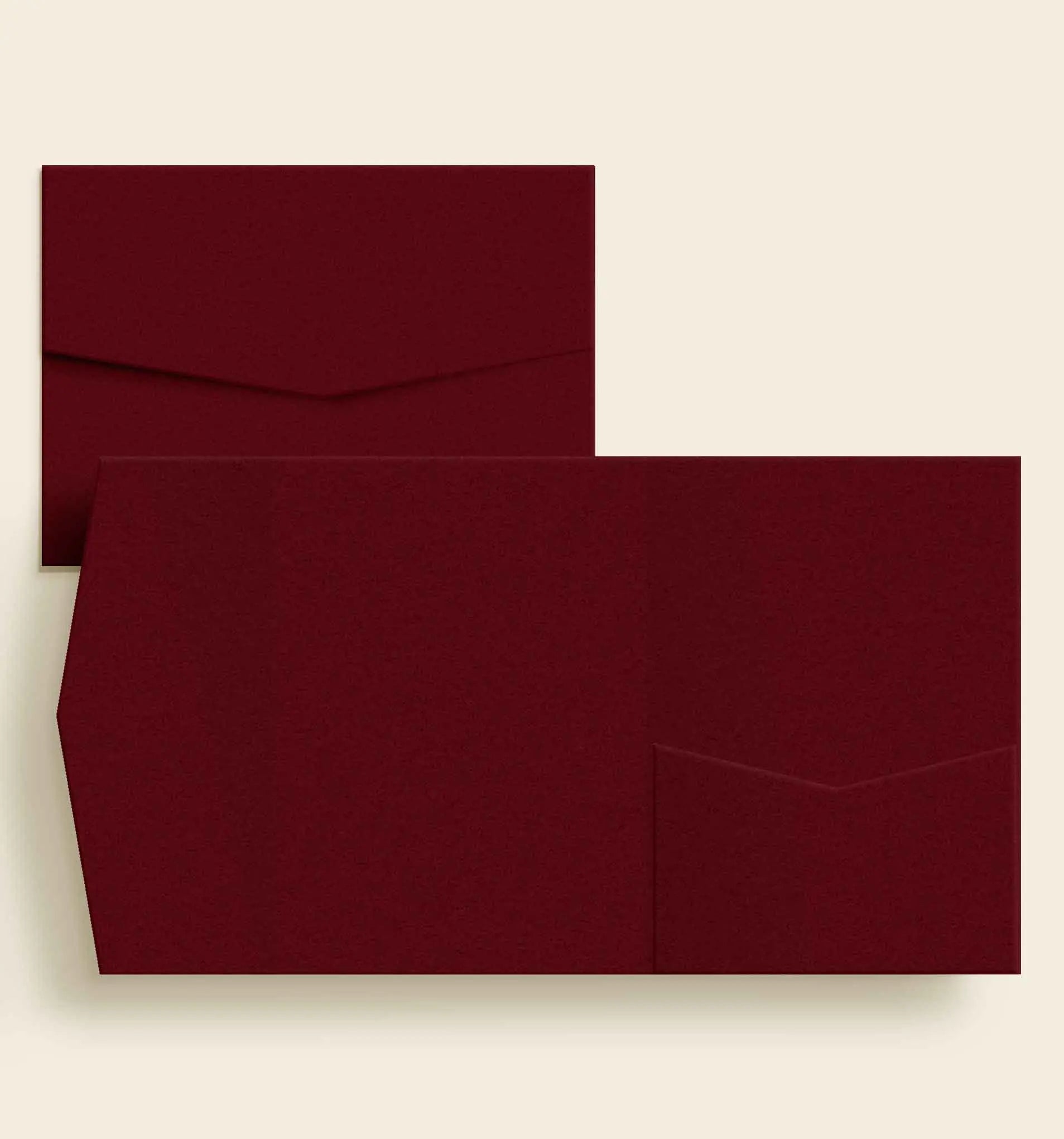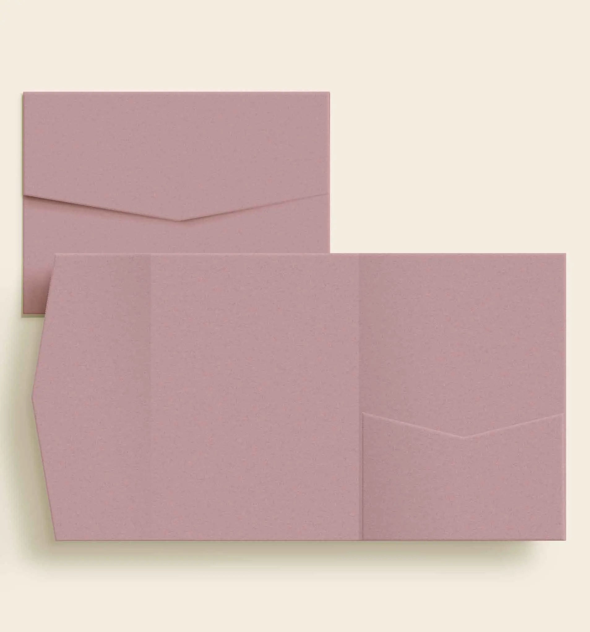 Vores elegante lommekuverter til bryllup er perfekte, hvis I selv designer og trykker jeres kort, men ønsker en eksklusiv pocketfold-løsning til at samle det hele. Her køber I kun selve lommekuverten + tilhørende forsendelseskuvert - uden invitationer og tillægskort. Ønsker I lommekuverter med design og trykte kort inkluderet, klik her:
