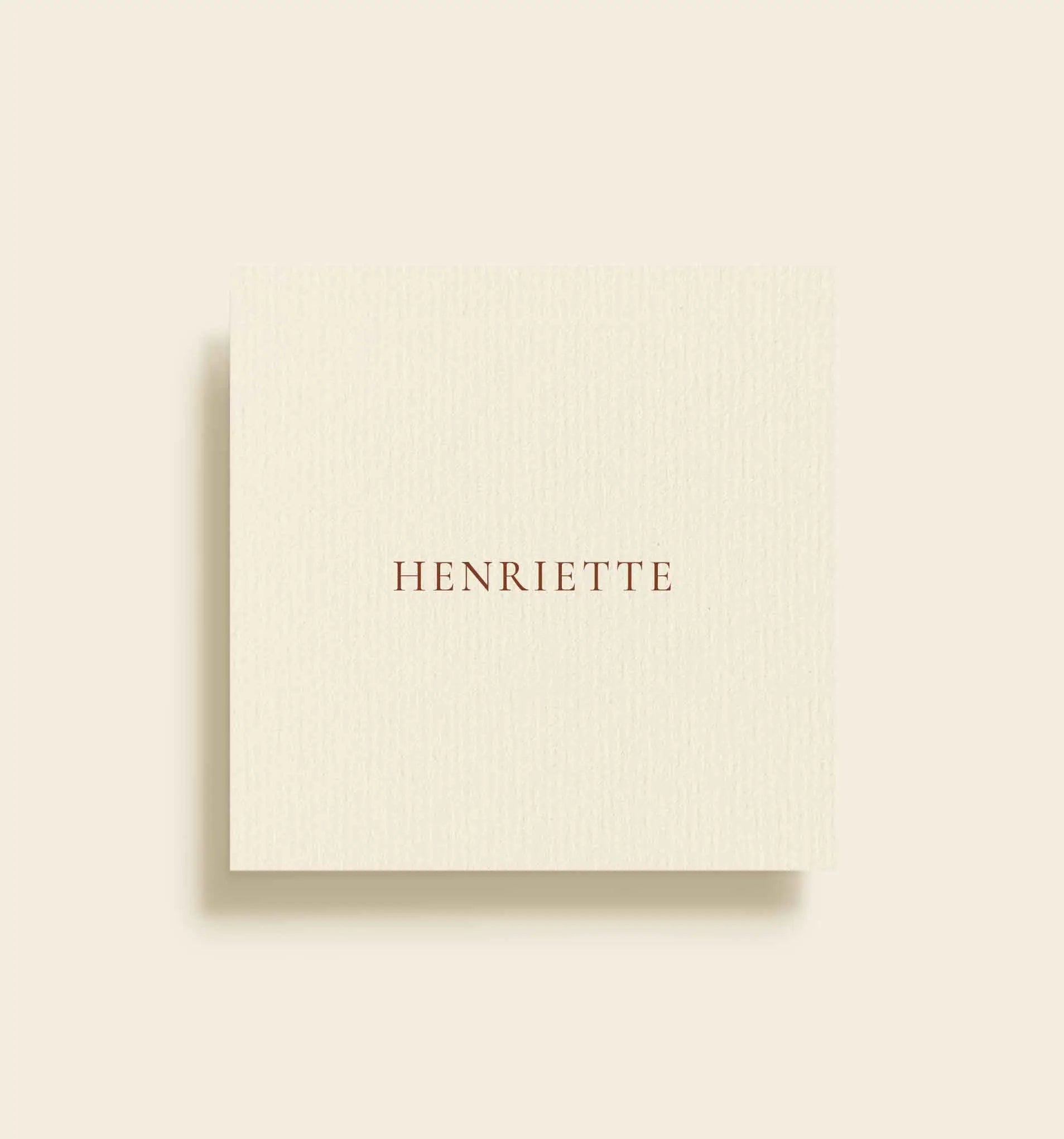 Enkelt og elegant bordkort fra Raadvad Vandrehjem serien med et minimalistisk udtryk og sammensat med en stilren typografi. Det rene design fremhæver gæstens navn og skaber en rolig og sofistikeret borddækning. Bordkortet fås i størrelserne 60x60, 90x30 og 70x50.
