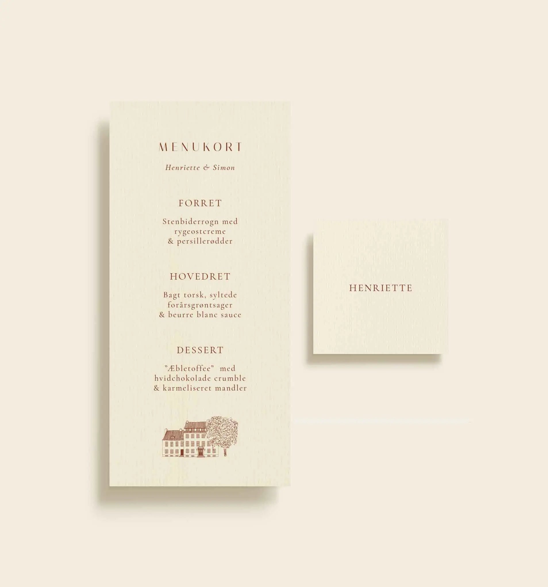 Ja. I kan tilkøbe menukort, bordkort, velkomstskilte, takkekort, bordplan m.m. - alt i samme serie, så I får en smuk, rød tråd på dagen.