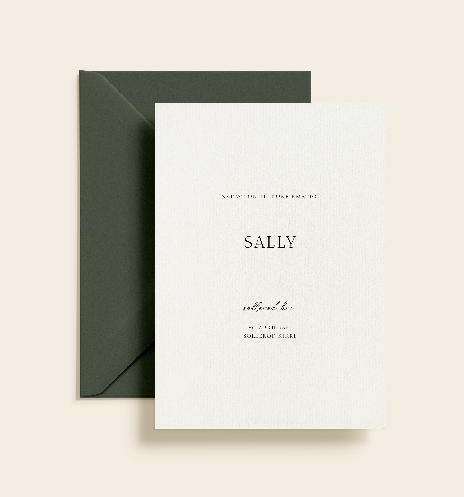 Klassisk konfirmationskort med minimalistisk design og elegant typografi. Et tidløst og stilrent kort med et roligt, nordisk udtryk.