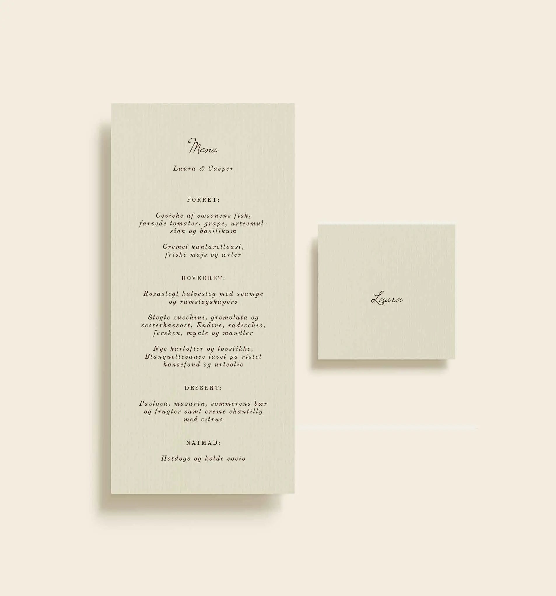 Ja. I kan tilkøbe menukort, bordkort, velkomstskilte, takkekort, bordplan m.m. - alt i samme serie, så I får en smuk, rød tråd på dagen.