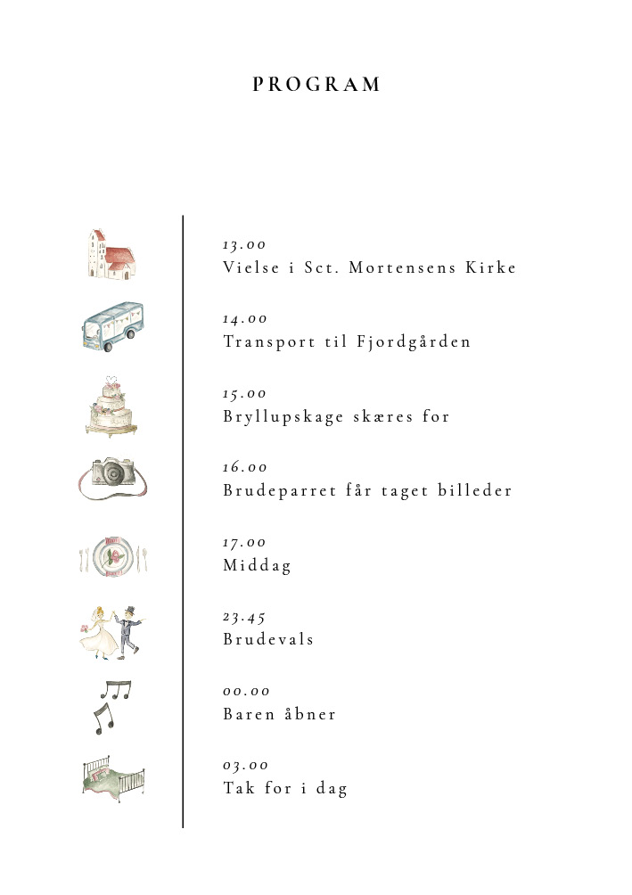 Lav et program over dagen med vores smukke ikoner af kirker, ringe og meget mere til at gøre programmet mere visuelt.