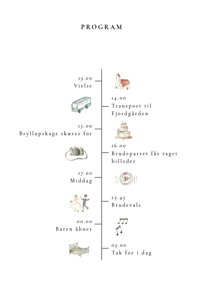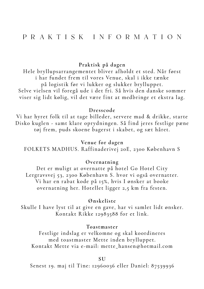 med ønskeliste, informationer om toastmaster og meget andet. Kortene kan fås i et væld af former og størrelser og kan være praktiske for dine gæster at have med på dagen.