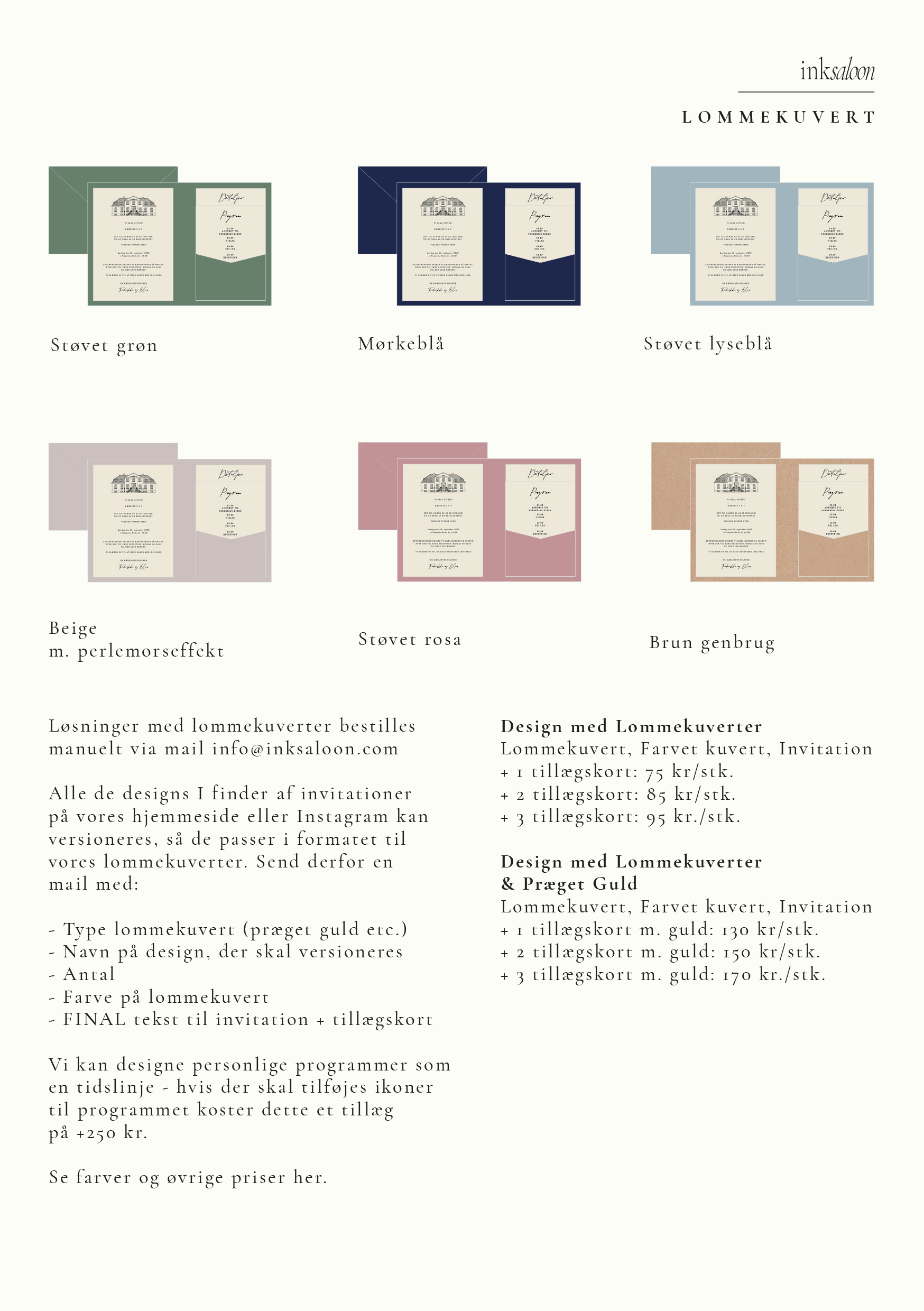 Løsninger med lommekuverter bestilles manuelt via mail info@inksaloon.com